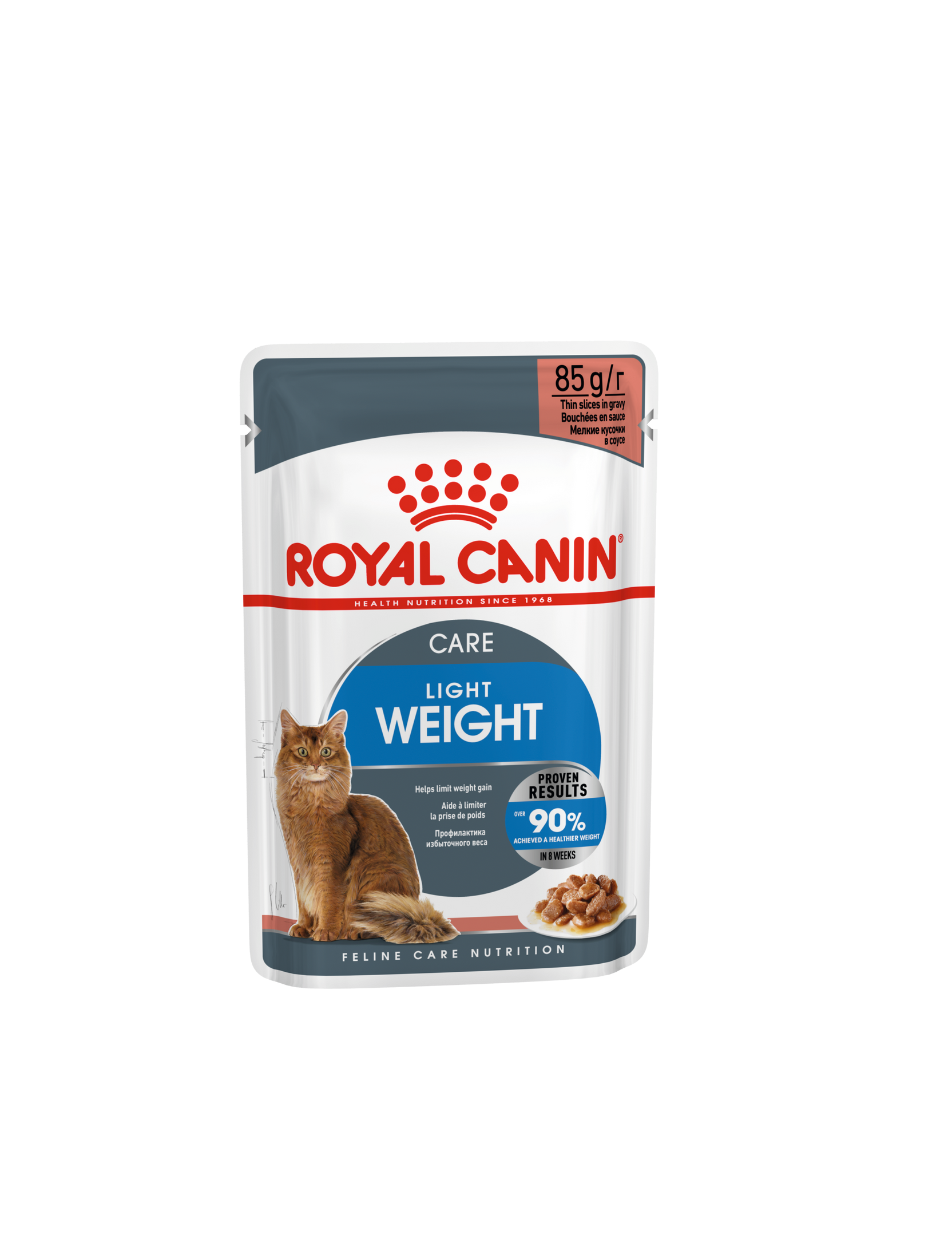 Royal Canin Ultra Light in Gravy and Jelly helps reduce the calorie intake of cats by as much as 19% to reduce weight gain and maintain a healthy weight. The complex blend includes nutrients that are also enriched with L-Carnitine to help support and stimulate a healthy and fast-acting metabolism.
