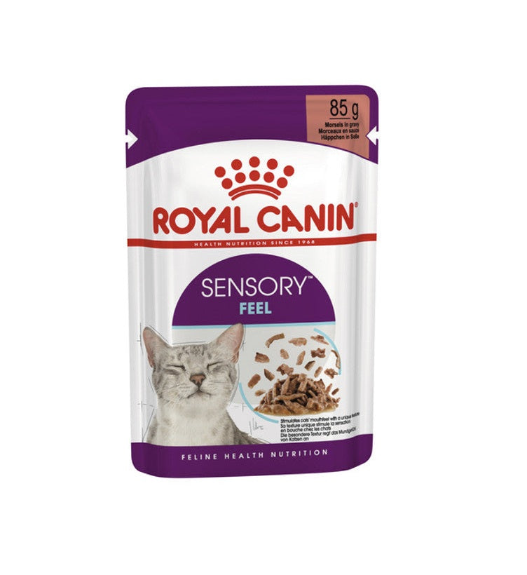 ROYAL CANIN Sensory Feel is a highly attractive formula with unique textures to help stimulate your cat's sense of mouthfeel (the sensation that food stimulates). Thanks to innovative manufacturing technology, Sensory Feel's mix of meaty chunks in gravy feature physical properties that provide textural sensations to both surprise and help stimulate your cat's sense of touch.