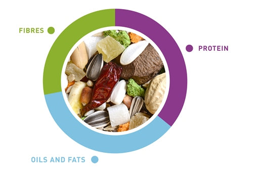 Put the feed in a feeder which your pet can easily reach. Change the drinking water every day. Keep in a cool, dry place