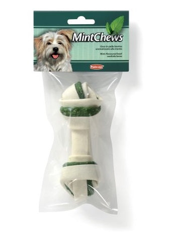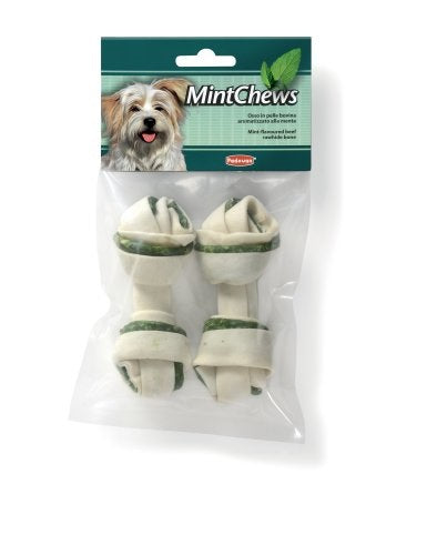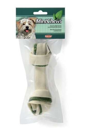 منتج مصنوع من جلود اللحم البقري بنكهة النعناع التي تحافظ على الكلب الذي يمضغه بسعادة لفترة طويلة بينما يساعد في تقليل تكوين الجير ، ويرجع الفضل في ذلك جزئيًا إلى النسيج المسامي الخاص بالمضغ ، مما يزيد من تأثيره الكاشطة على الأسنان.
