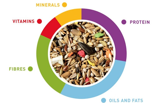 Pour into a feeding tray and let the bird eat at will. Ensure that fresh, clean water is available every day. Keep in a cool, dry place