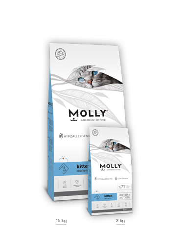Molly Kitten Food is formulated by professional nutritionists for kittens up to 12 months and mother cats during pregnancy and lactation period, and it is produced by extruder technology to increase its quality.This technology aims to enable your cat to take all goodness from their cat food for their nutrition needs. Molly Kitten is enriched with Omega-3 fats, basic minerals and vitamins to promote a healthy metabolism and bone development.