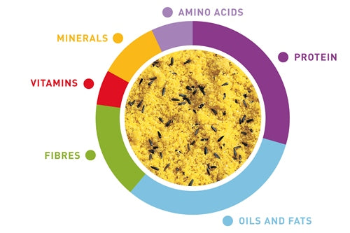 Soft yellow food, to be given in conjunction with the bird’s main food, to increase the supply of nutrients at certain stages in the life of seed eaters (moulting and breeding) or when the animal is stressed. Also useful to supplement the bird’s everyday diet.